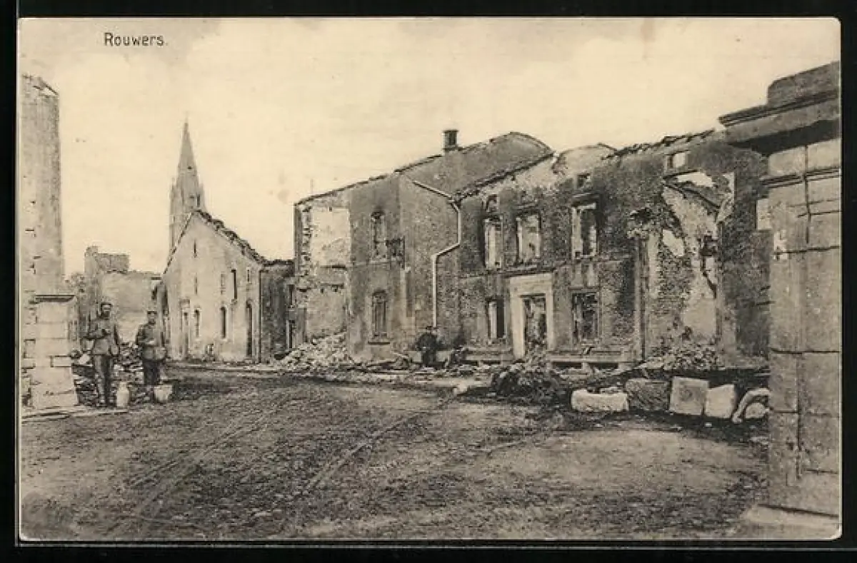 AK Rouwers, Soldaten vor zerstörten Häusern
