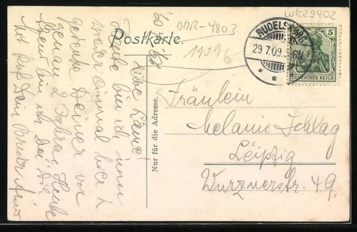 alte Ansichtskarte, gelaufen 1909, Stempelspur, guter Zustand