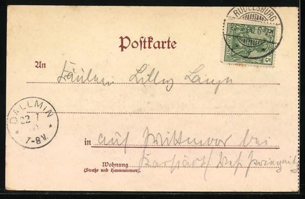 alte Ansichtskarte, gelaufen 1900, guter Zustand