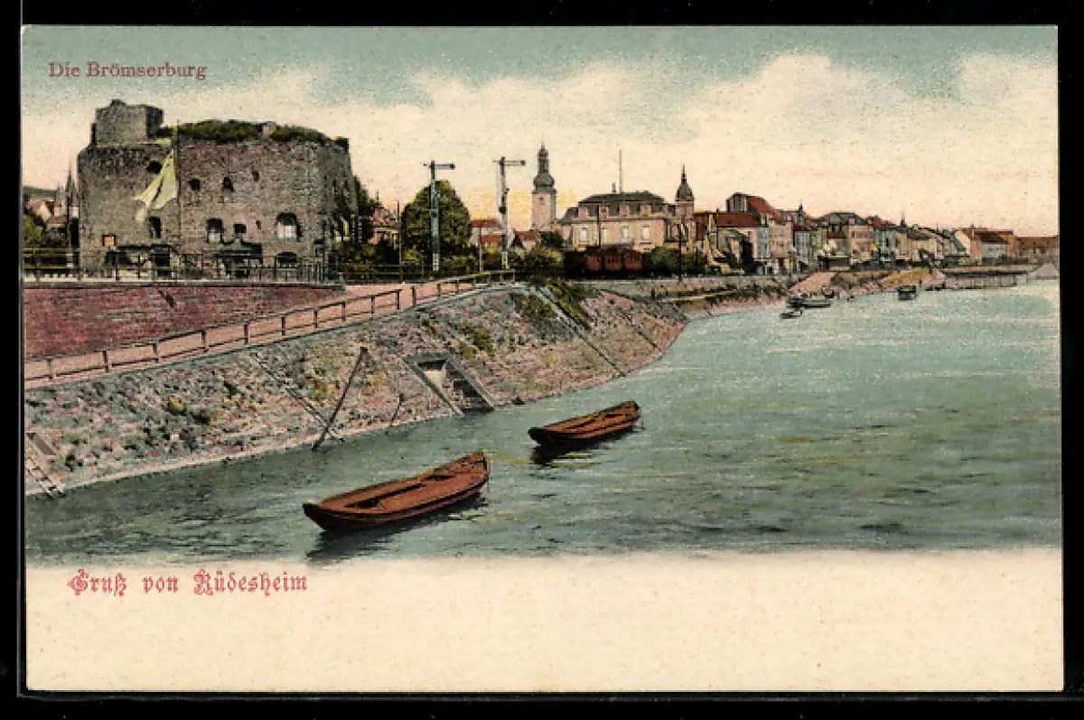 AK Rüdesheim, Brömserburg, Uferpromenade, Boote