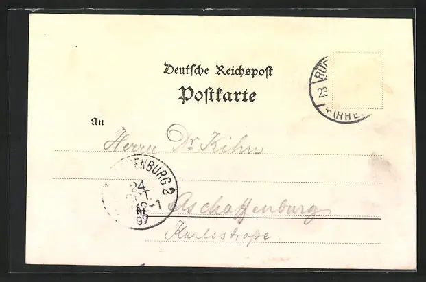 alte Ansichtskarte, gelaufen 1897, Briefmarke entfernt, Albumspuren, Kante leicht beschnitten, sonst guter Zustand