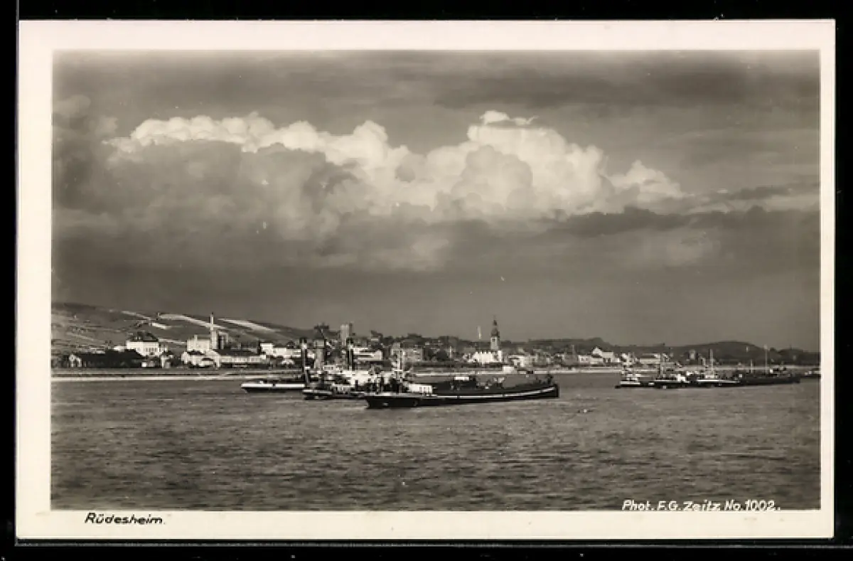 AK Rüdesheim am Rhein, Rheinansicht mit Schiffen