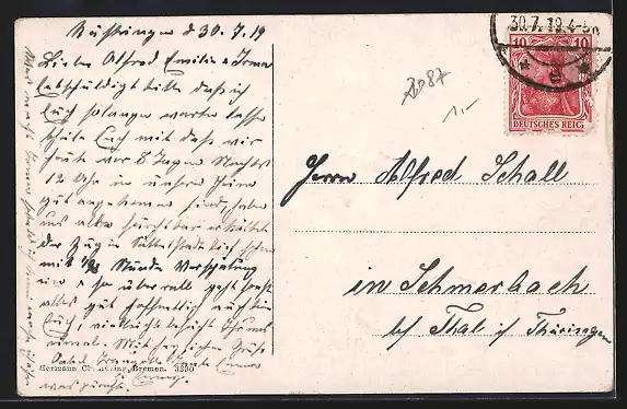 gelaufen 1919, Stempelspur, guter Zustand