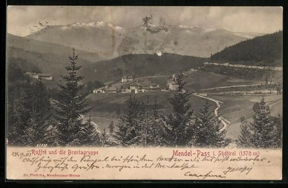 AK Ruffrè /Südtirol, Ortsansicht mit der Brentagruppe, Mendel-Pass