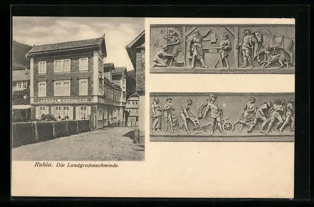 AK Ruhla, Die Landgrafenschmiede, Reliefs