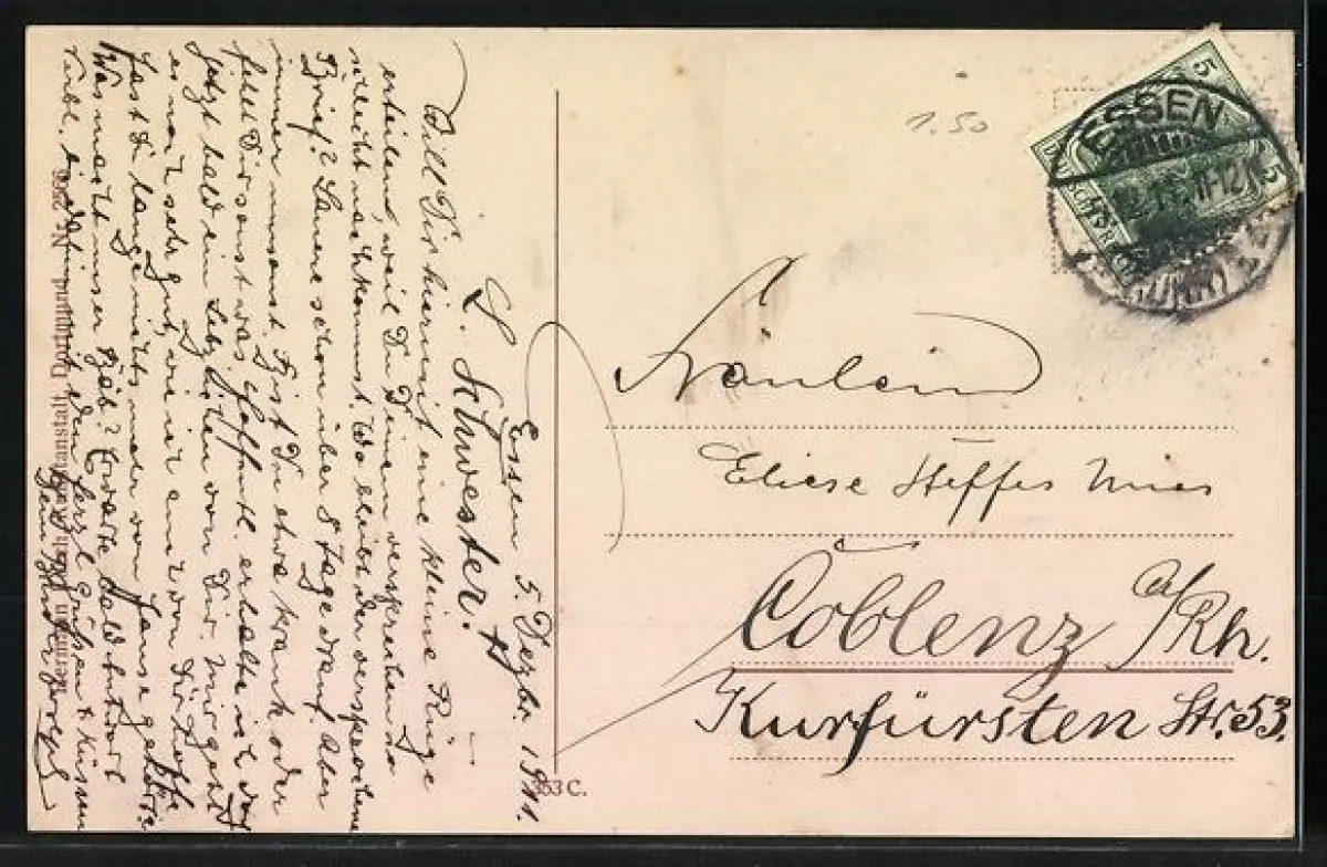 alte Ansichtskarte, gelaufen 1911, Eckknick unten links, Stempelspur, guter Zustand