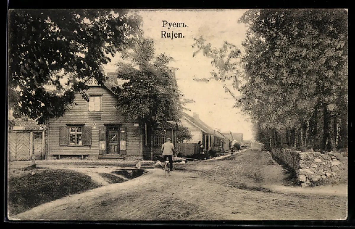 AK Rujen, Strassenpartie mit Holzhäusern