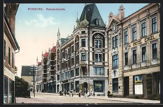 AK Rumburg, Hotel Engel, Bahnhofstrasse