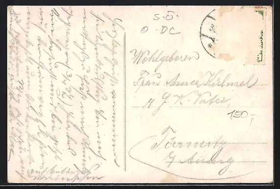 alte Ansichtskarte, gelaufen, Briefmarke entfernt, Bugspur oben li., guter Zustand