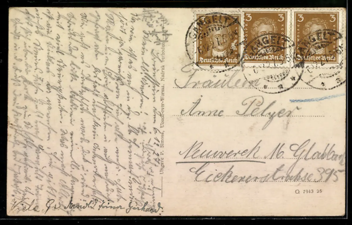 gelaufen 1927, Eckknick re. unten, guter Zustand