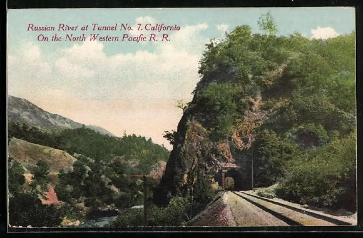 AK Russian River, CA, Russian River and Tunnel No. 7 on the North Western Pacific Railroad