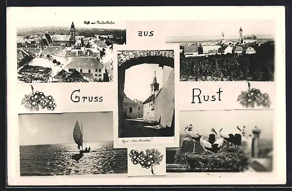 AK Rust, Blick durch altes Stadttor, Storche im Nest, Ortsansicht