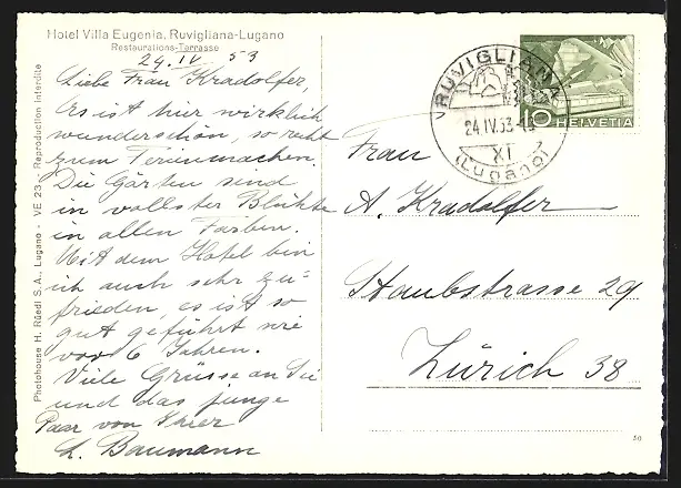 AK Ruvigliana-Lugano, Hotel Villa Eugenia, Restaurations-Terrasse
