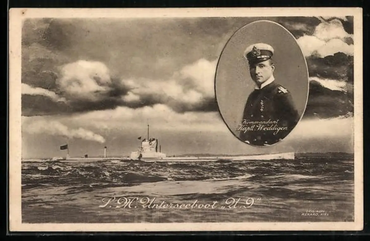 AK S. M. U-Boot U9 vor der Küste, Porträt Kommandant Kaptl. Weddigen