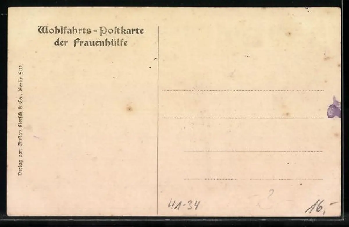 Personenbezogene Daten auf der Rückseite der Karte wurden durch blauen Textmarker unkenntlich gemacht. Die blauen Stellen sind auf die Vorderseite durchgeweicht und wirken sich negativ auf das Postkartenfoto aus