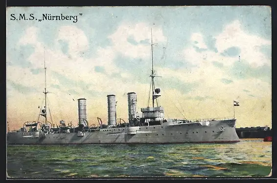 AK SMS Kriegsschiff Nürnberg vom Ostasiengeschwader bei der Hafeneinfahrt