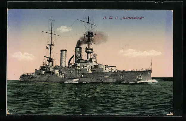 AK S.M.S. Wittelsbach auf See in Fahrt