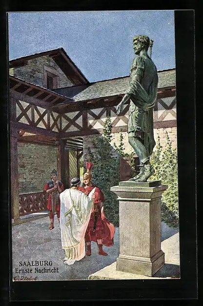 AK Saalburg, Römischer Bote meldet eine ernste Nachricht im Atrium