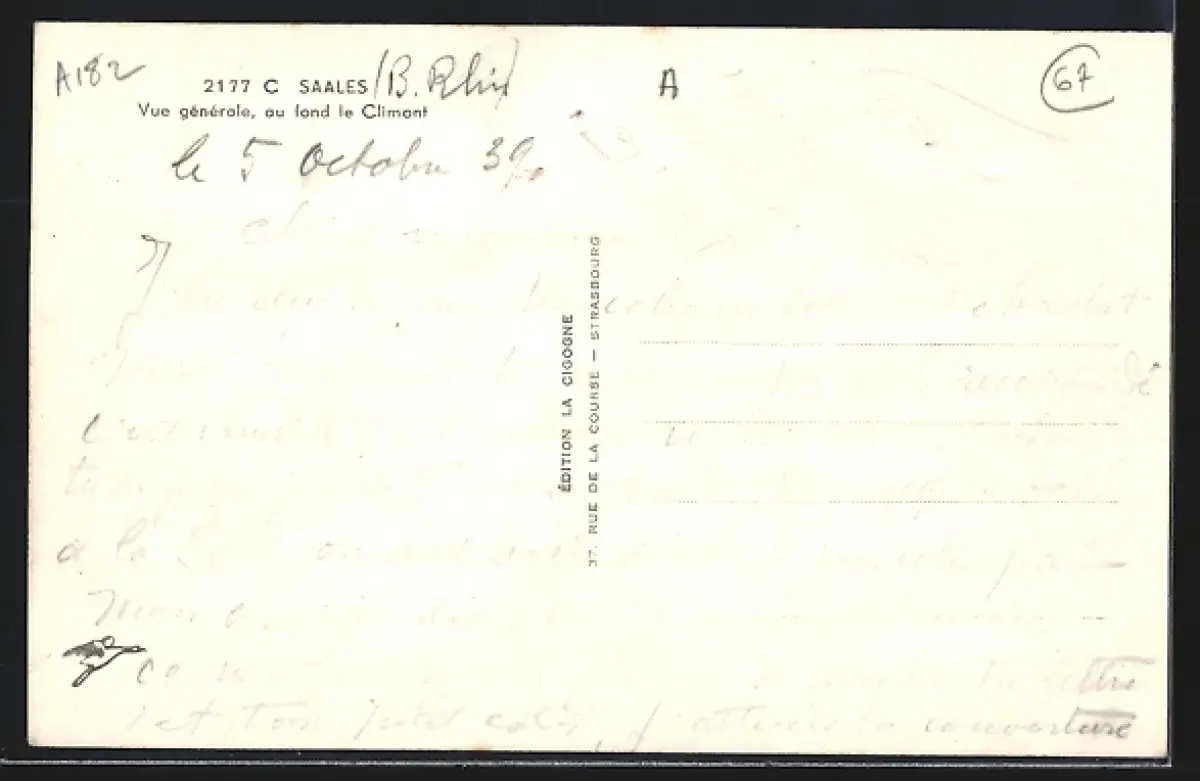 AK Saales /B. Rhén, Vue générale, au fond le Climont