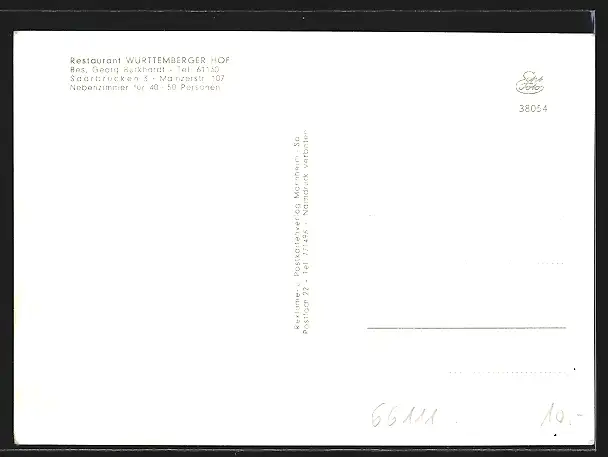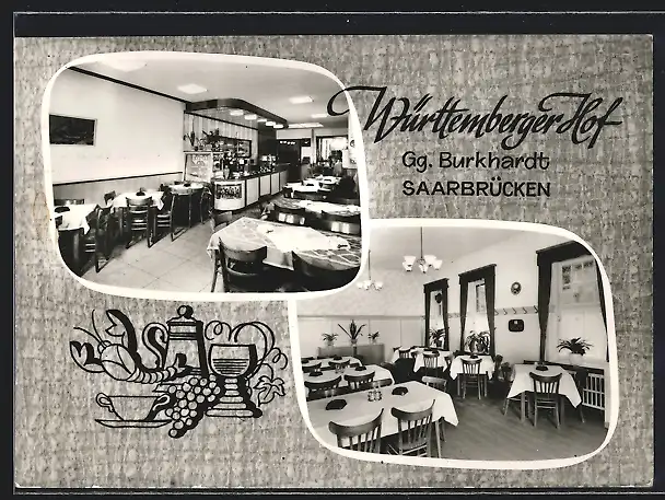 AK Saarbrücken, Das Restaurant Württemberger Hof, Gaststube und Barbereich, Mainzerstr. 107