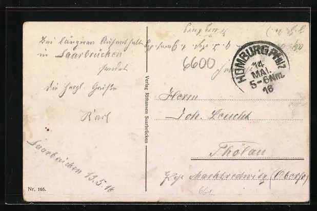 alte Ansichtskarte, gelaufen 1916, Abriebspuren oben u. unten, guter Zustand