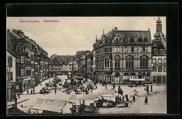 AK Saarbrücken, Marktplatz mit Strassenbahn