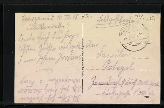 alte Ansichtskarte, gelaufen 1918 als Feldpost, guter Zustand