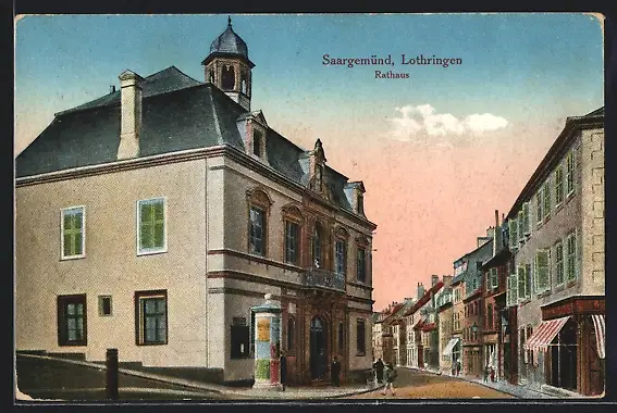 AK Saargemünd /Lothringen, Rathaus mit Litfasssäule