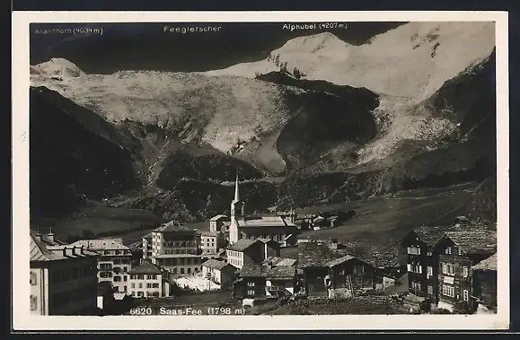 AK Saas-Fee, Teilansicht mit Feegletscher, Alphubel und Allalinhorn