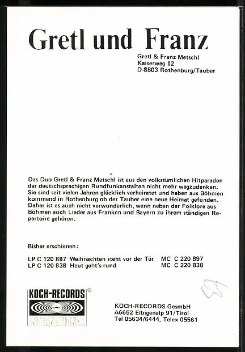 AK Sänger-Duo Gretl und Franz im Portrait, Autograph