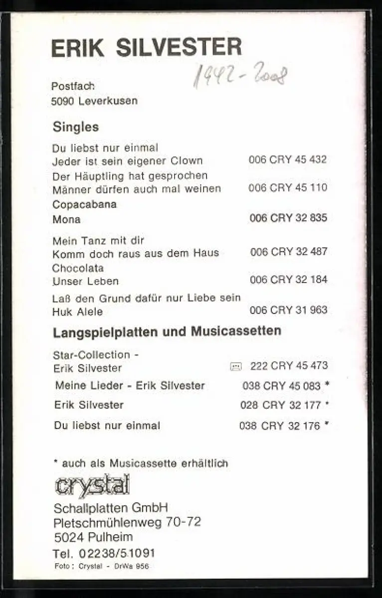AK Sänger Erik Silvester blickt lächelnd in die Kamera, Autograph