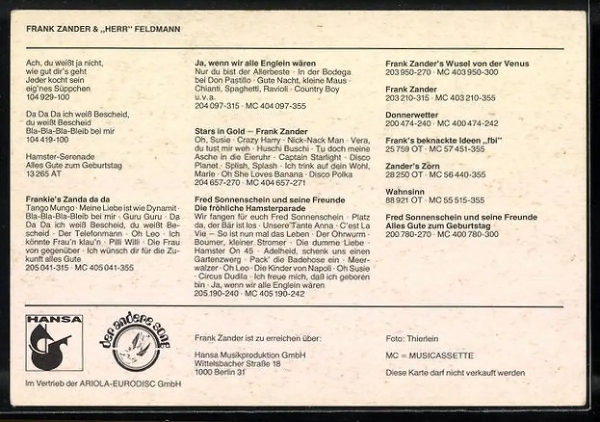 AK Sänger Franz Zander und Herr Feldmann, Autograph