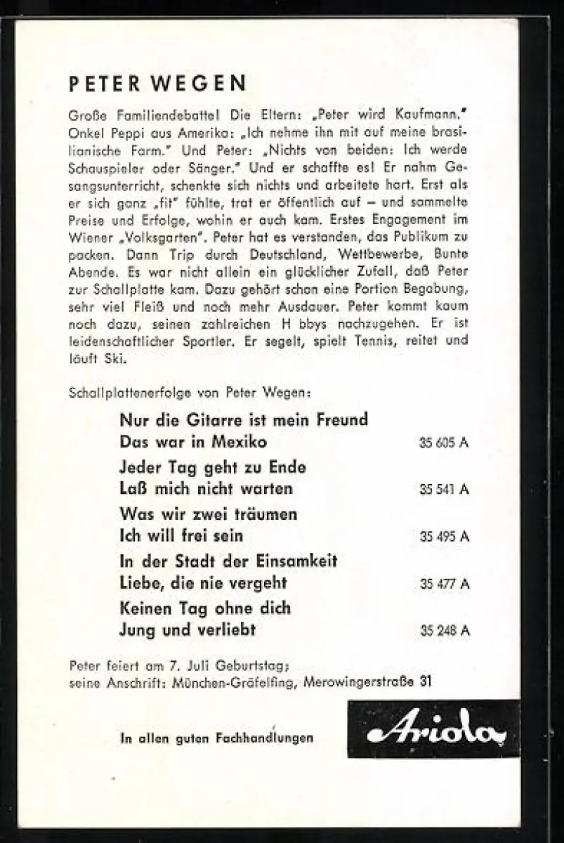 AK Sänger Peter Wegen, Portrait im Anzug, Autograph