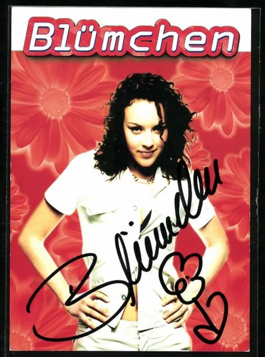 AK Sängerin Blümchen in kesser Pose portraitiert, Autograph