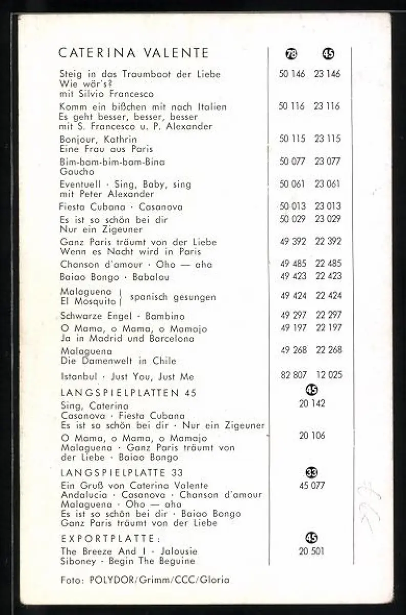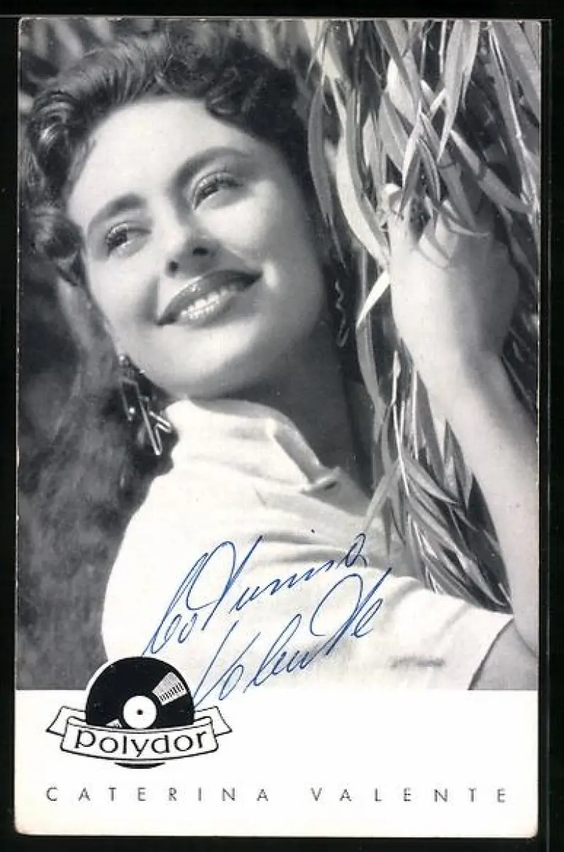 AK Sängerin Caterina Valente lächelnd vor der Kamera possierend, Autograph