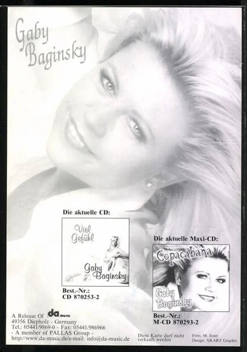 AK Sängerin Gaby Baginsky im Portrait, Autograph
