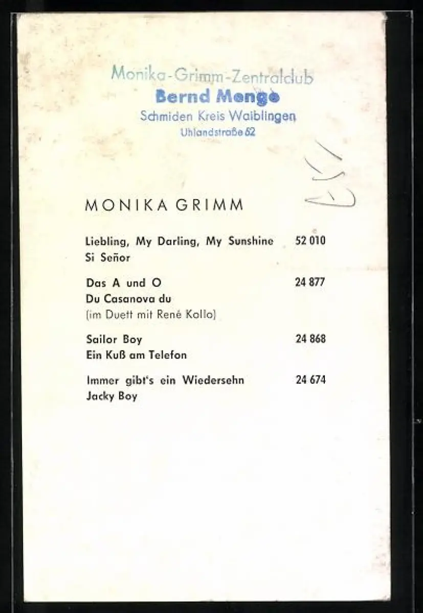 AK Sängerin Monika Grimm am Telefon, Autograph