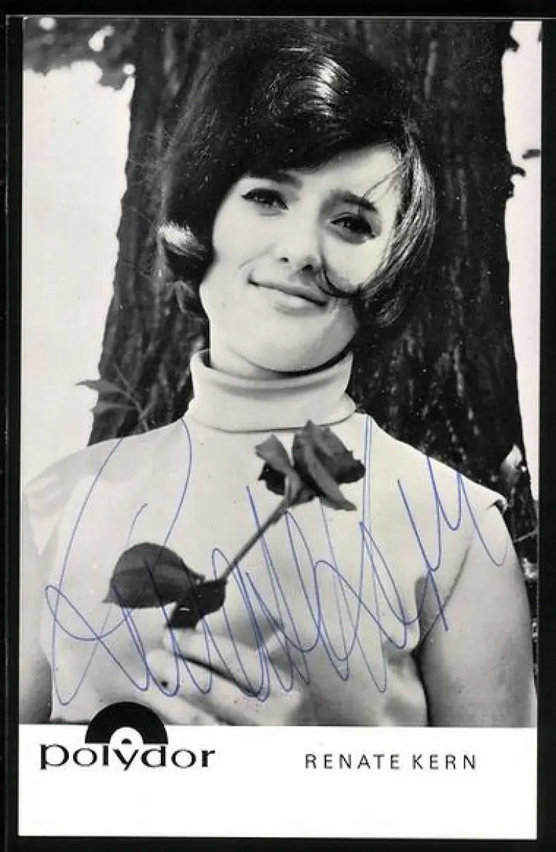 AK Sängerin Renate Kern mit Rose an einem Baum stehend, Autograph