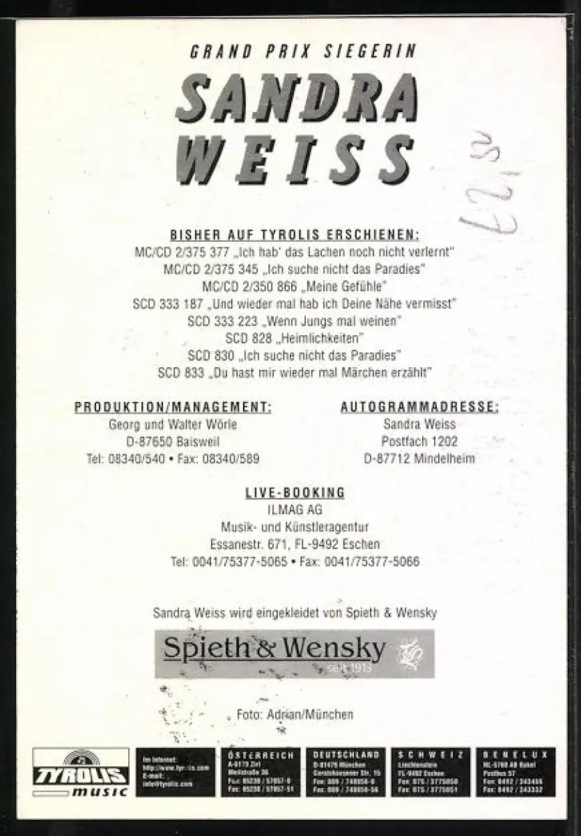 AK Sängerin Sandra Weiss mit bezauberndem Lächeln, Autograph