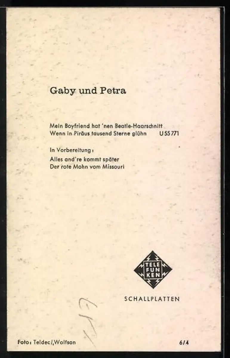 AK Sängerinnen-Duo Gaby und Petra lächelnd im Portrait, Autographen