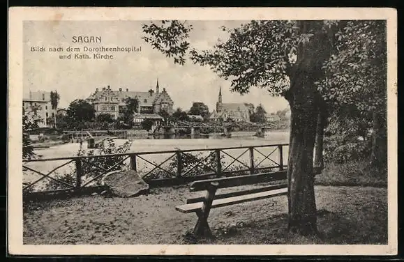 AK Sagan, Blick nach dem Dorotheenhospital und Kath. Kirche