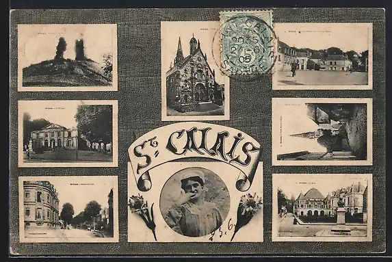AK Saint-Calais, Collage de vues pittoresques et architecture locale