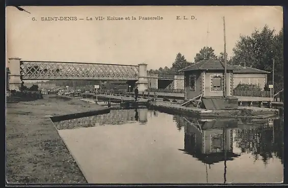 AK Saint-Denis, La VIIe Écluse et la Passerelle