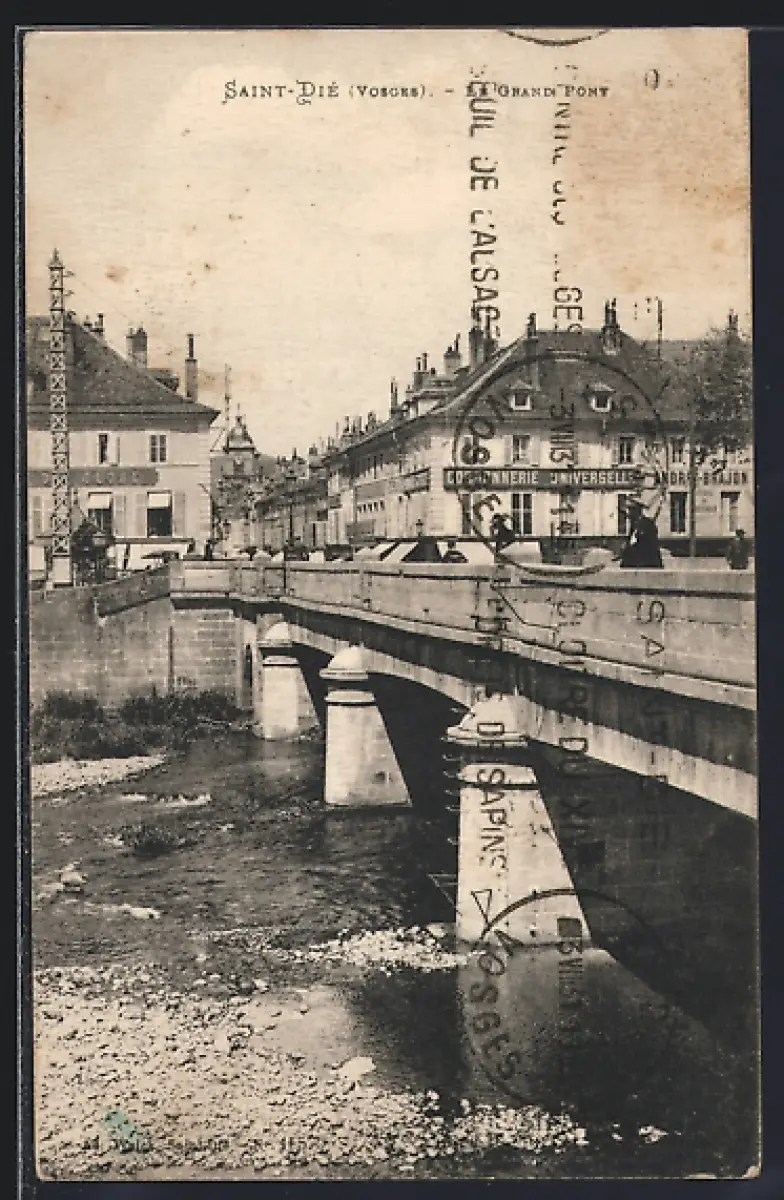 AK Saint-Dié /Vosges, Le Pont sur la Meurthe avec vue sur la Compagnie Universelle