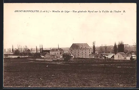 AK Saint-Hippolyte, Moulin de Lége, Vue générale Nord sur la Vallée de l`Indre