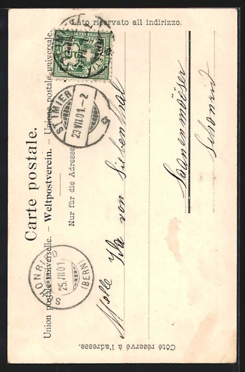 gelaufen 1901, Eckknick links unten, guter Zustand