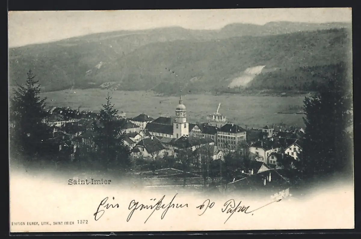 AK Saint-Imier, Totalansicht mit Bergpanorama