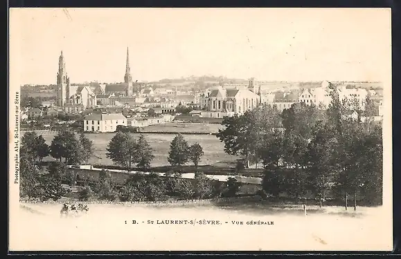AK Saint-Laurent-sur-Sèvre, Vue générale de la ville et des églises depuis le parc