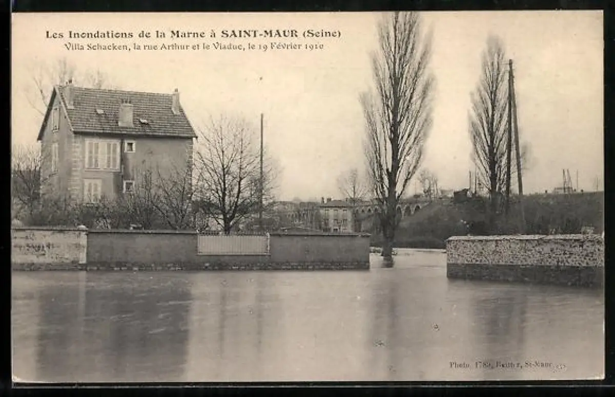 AK Saint-Maur /Seine, Villa Schacken, la rue Arthur et le Viaduc, Févier 1910