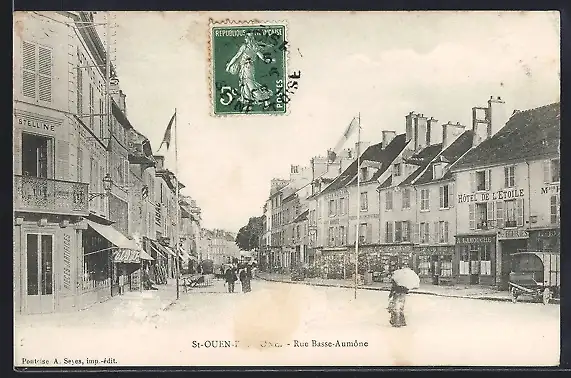 AK Saint-Ouen-l`Aumône, Rue Basse-Aumône animée avec passants et commerces